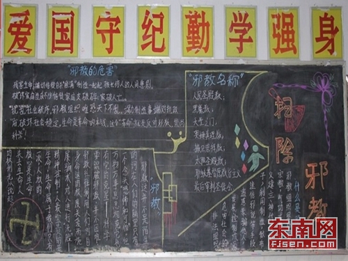 各班級(jí)開(kāi)展“崇尚科學(xué),反對(duì)邪教”主題黑板報(bào)制作比賽,普及學(xué)生反邪教知識(shí),增強(qiáng)識(shí)別和抵制邪教的能力。