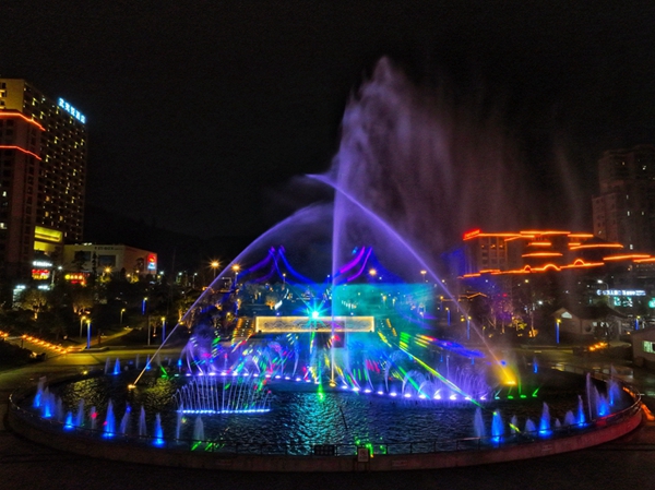 1月16日晚,建陽城區人民公園水幕電影正式亮相,為廣大市民增添了一份美輪美奐的視聽盛宴。在五光十色的燈光照射下,空中水霧與燈光交織出色彩繽紛、魔幻般的絢麗景觀。許多市民來到現場一睹為快,紛紛拿出手機拍攝記錄。 水幕電影位于人民公園音樂噴泉內,由區政府出資、區城市管理局負責承建,對音樂噴泉原有的設備進行了升級改造,經過前期的調試,噴泉的燈光、角度、音樂都有了新的變化。