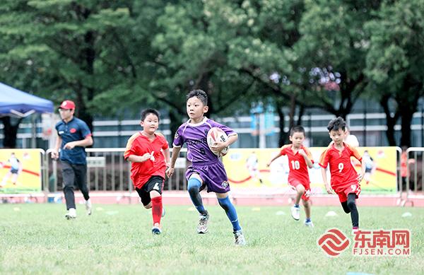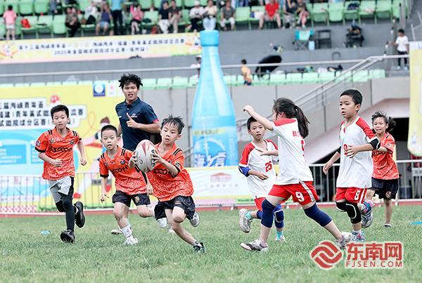 圖為U8觸式混合組:洛陽燎原象橄欖球俱樂部VS福州麥霸U8橄欖球隊 東南網7月13日訊(本網記者 顏財斌 通訊員 張凝 文/圖)7月12日,第十三屆海峽青年薈·第十屆海峽兩岸(福建)青年英式橄欖球交流賽、2025年全國觸式橄欖球分區賽(福州站)在福州舉行,也是福州地區連續四年舉辦全國性的橄欖球賽事。 2025年全國觸式橄欖球分區賽(福州站)由中國橄欖球協會主辦。本次賽事形式多樣、參與廣泛,規則上涵蓋了撞式、觸式和腰旗等多種賽制;年齡上從5歲直達75歲,設立了從幼兒、小學、中學到成年隊伍等多個組別。來自福建、臺灣以及浙江、山東、重慶等地超過60支隊伍、1000多名運動員登場競技,是兩岸橄欖球交流賽史上參與人數規模最多的賽事,也是福建地區規模最大的全國性橄欖球賽事。