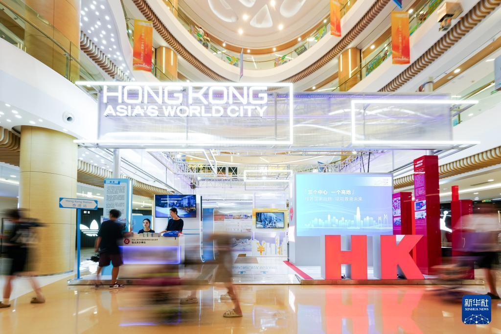當日,由香港特別行政區政府駐北京辦事處主辦的“三個中心 一個高地——服務國家戰略 賦能香港未來”主題展覽在烏魯木齊開幕。