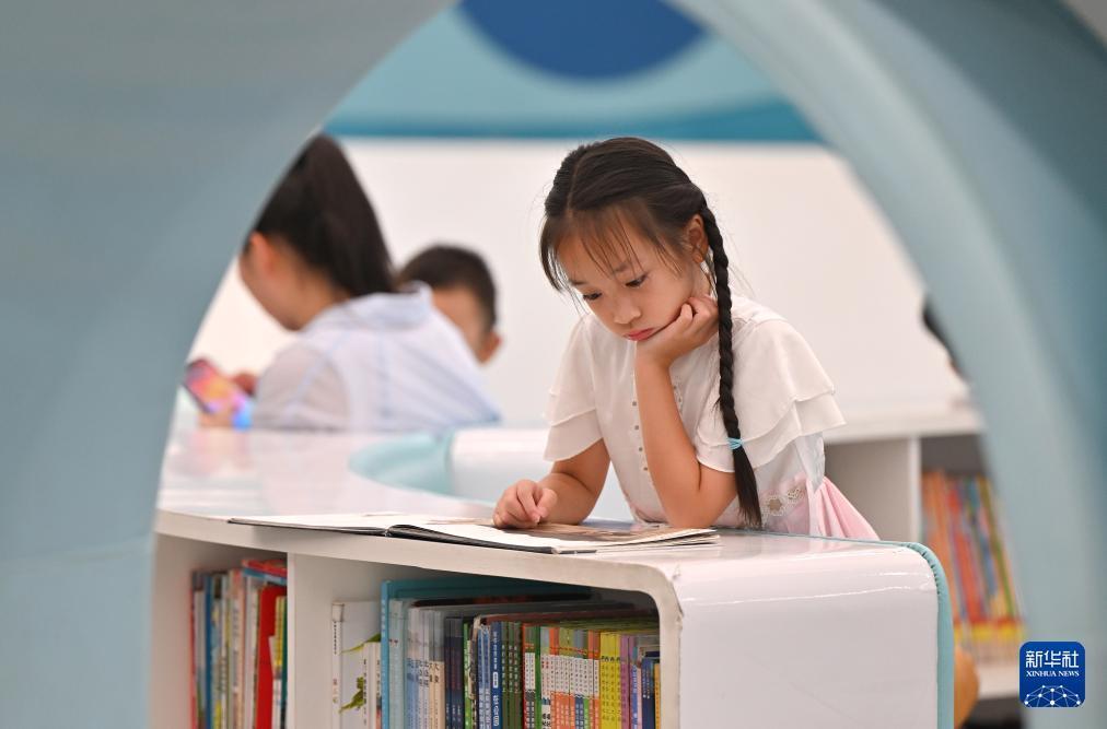 8月3日,小朋友在位于海口市的海南省圖書館讀書。