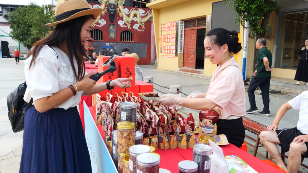 傍晚時分,大廟坪廣場更加熱鬧起來。“農特優(七彩嘉禾)展銷”攤位前,仁山葡萄、建陽水吉扁肉等水吉特色產品以及小白茶、紅茶、水仙茶等建陽名優特產,吸引了不少群眾駐足選購;同步開啟的“地攤夜市”更是充滿煙火氣,特色小吃等攤位一字排開,叫賣聲、歡笑聲交織成一幅生動的鄉村夜生活畫卷。