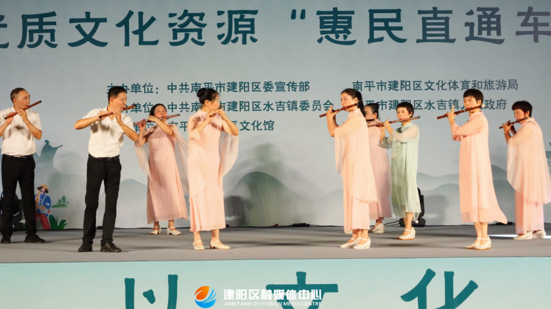 “家門口的文藝表演可真不錯,節目豐富,還對我們老百姓的胃口,希望以后能多多舉辦。”水吉鎮建設村的群眾說道。 全天聯動:從書香氤氳到市集煙火 首站“惠民直通車”開進水吉,這場集文化浸潤、惠民展銷與文藝匯演于一體的盛宴,由建陽區委宣傳部、區文化體育和旅游局主辦,水吉鎮黨委、政府承辦,區文化館協辦。
