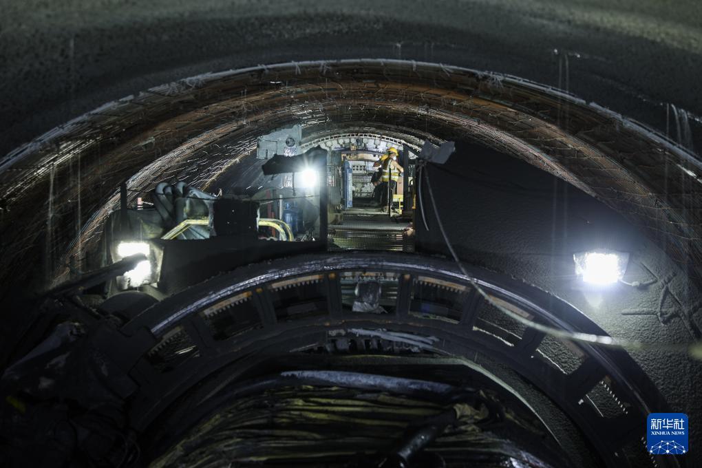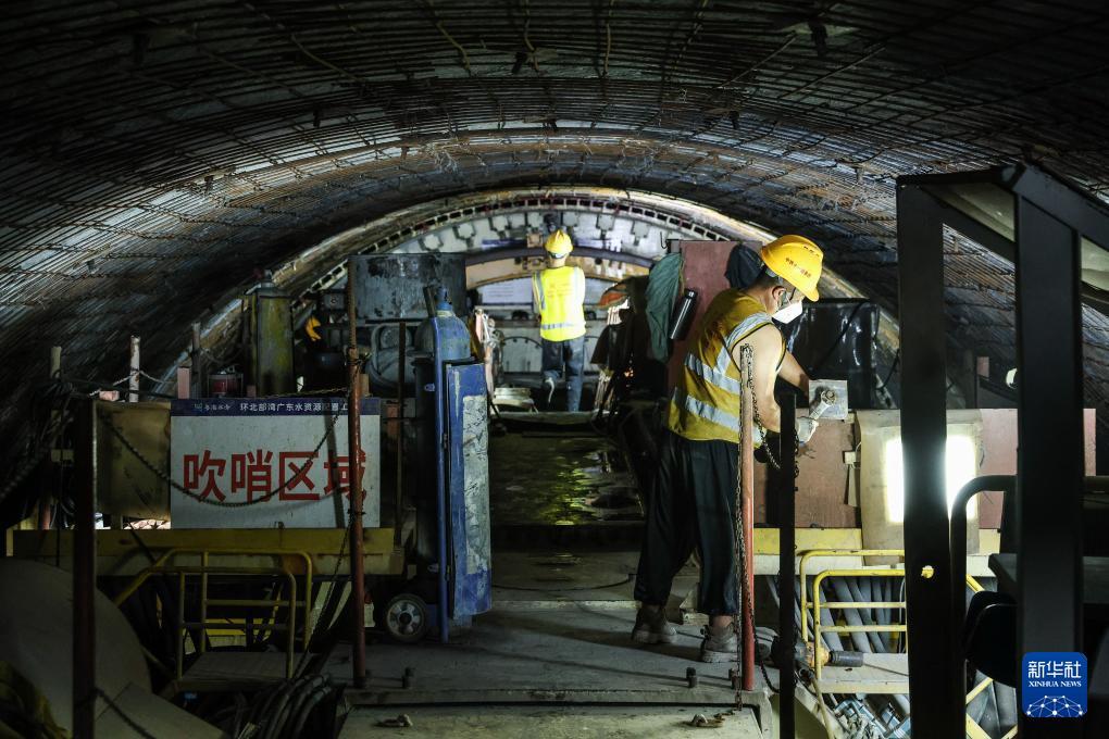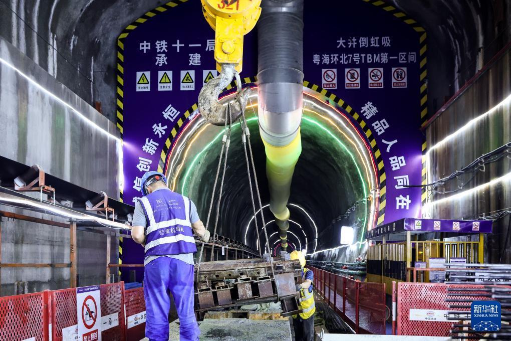 施工人員在大仁支洞工區(qū)盾構(gòu)始發(fā)洞作業(yè)(8月11日攝)。 日前,中鐵十一局承建的環(huán)北部灣廣東水資源配置工程B2標(biāo)“粵海環(huán)北7號”全斷面敞開式硬巖掘進(jìn)機(jī)(TBM)掘進(jìn)突破700米,項目施工從啟動適應(yīng)期邁入高效推進(jìn)期。 環(huán)北部灣廣東水資源配置工程是國家水網(wǎng)骨干工程之一,建成后將優(yōu)化區(qū)域水資源配置格局。 新華社記者 劉大偉 攝
