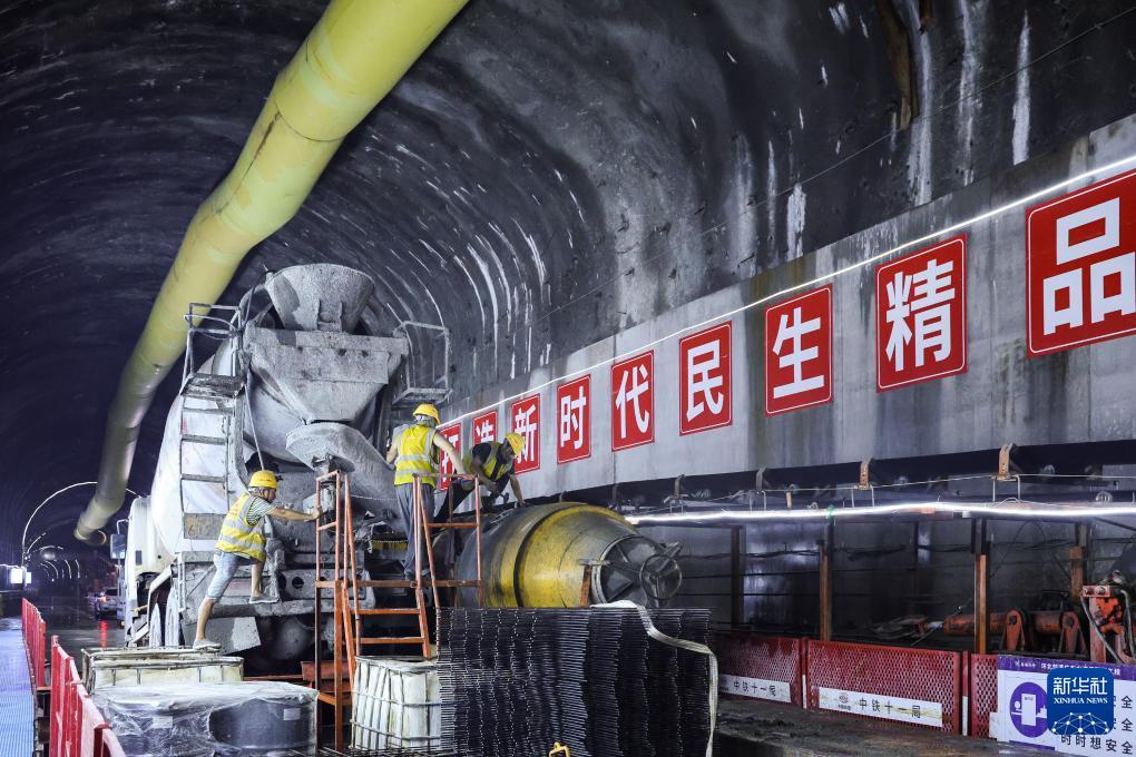 施工人員在大仁支洞工區(qū)干線隧洞TBM工區(qū)轉(zhuǎn)運混凝土砂漿(8月11日攝)。 日前,中鐵十一局承建的環(huán)北部灣廣東水資源配置工程B2標(biāo)“粵海環(huán)北7號”全斷面敞開式硬巖掘進(jìn)機(jī)(TBM)掘進(jìn)突破700米,項目施工從啟動適應(yīng)期邁入高效推進(jìn)期。 環(huán)北部灣廣東水資源配置工程是國家水網(wǎng)骨干工程之一,建成后將優(yōu)化區(qū)域水資源配置格局。 新華社記者 劉大偉 攝