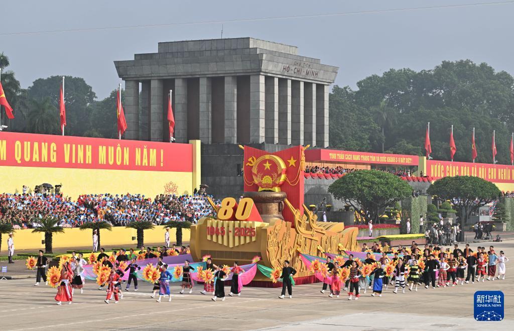 這是9月2日在越南河內(nèi)巴亭廣場拍攝的八月革命暨國慶80周年紀(jì)念活動(dòng)現(xiàn)場。新華社記者 李響 攝 越共中央總書記蘇林致辭表示,80年前,胡志明主席在巴亭廣場發(fā)表《獨(dú)立宣言》,宣告越南民主共和國的誕生,開啟了越南獨(dú)立與自由的新紀(jì)元。蘇林說,面向未來,越南共產(chǎn)黨確立了2045年建國100周年的目標(biāo),將越南建設(shè)成富強(qiáng)、繁榮、幸福的國家,這是全民族的渴望。