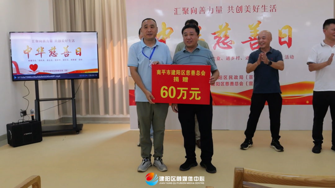 今年9月5日是我國第十個“中華慈善日”。為持續推進慈善文化“進機關、進企業、進鄉村、進社區、進家庭”,9月4日上午,建陽區民政局聯合區社工部、區慈善總會等多家單位在區養老服務中心舉辦“匯聚向善力量 共創美好生活”宣傳活動。區人大常委會副主任、區慈善總會會長全祖梁出席。 活動中,區慈善總會向區養老服務中心捐贈60萬元,用于養老服務中心設施建設;區養老服務中心向區慈善總會回贈感謝錦旗;出席活動的領導嘉賓共同為我區困難學生代表發放慈善助學金,并勉勵他們要常懷感恩之心、刻苦學習。區慈善總會、區個私協會向區養老服務中心捐贈了一批生活物資。