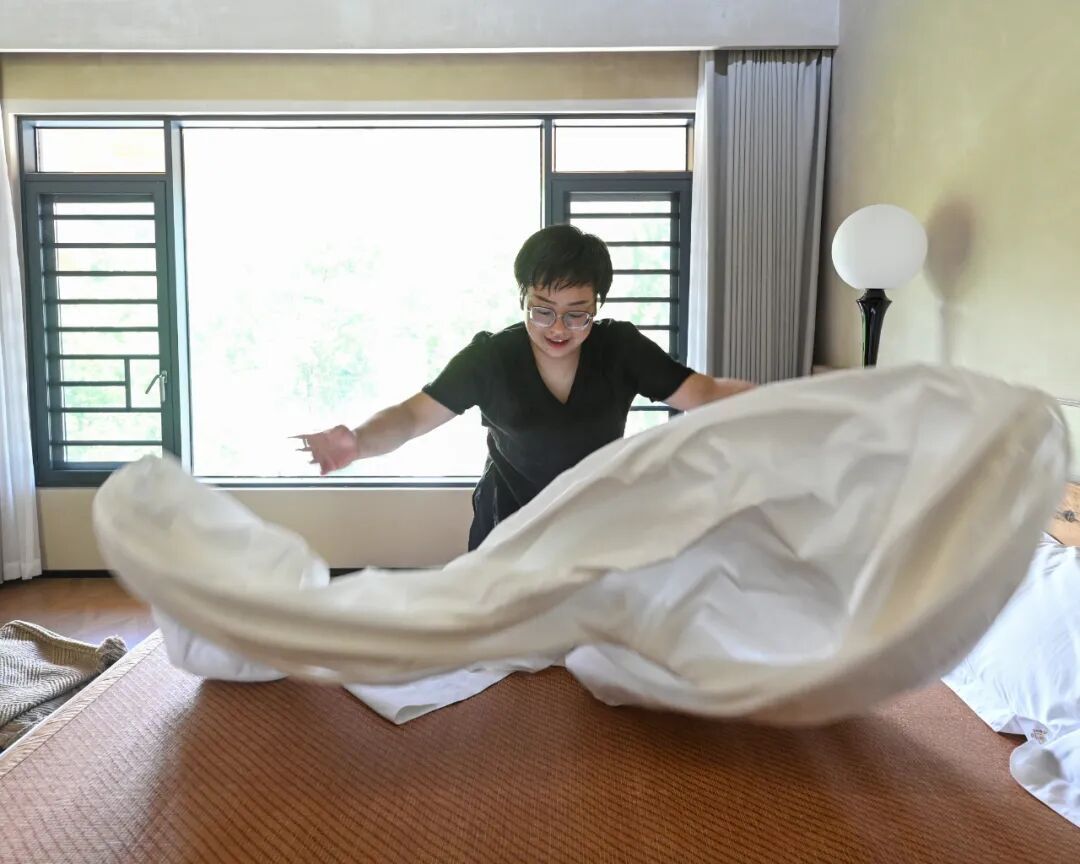 陳美整理民宿房間 此外,從民宿的基礎建設,到建成后的保潔、前臺,陳美都選擇了招聘杜潭本村人?!八麄冏≡谶@里多年,對杜潭很了解,是‘家鄉推薦官’的最佳人選!讓他們向客人介紹杜潭的美食、山水風光、風土人情,太合適不過了。”陳美還積極向客人推薦村里的小酒館、農家樂,帶他們品嘗地道的本地美食,帶動了不少村民增收致富。據了解,“溪客”民宿開業一年多,周末和假日幾乎都是滿客狀態。 近年來,麻沙鎮黨委以鄉情鄉愁喚回“歸鄉人”,以本土培養激活“原鄉人”,以資源優勢吸引“新鄉人”,有效拉動農文旅融合發展。杜潭村深入摸排在外優秀人才,安排掛村領導、村兩委、黨員等“多對一”掛鉤聯系人才,常態化開展走訪對接、跟蹤服務,積極宣傳家鄉變化,及時將各項惠企政策,優質資源、產業項目等信息傳達,提高他們對家鄉認同感、歸屬感。(陳穎 張怡雯/文 張行健/攝) |