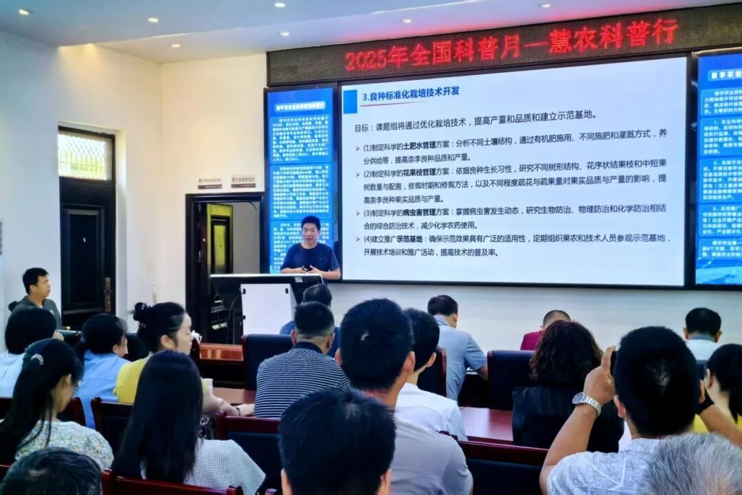 在科普培訓會上,陳教授詳細介紹了柰李種質(zhì)資源研究和產(chǎn)業(yè)發(fā)展情況。柰李作為福建特色果樹品種,擁有超過八百年的栽培歷史,在我國河北、湖南、浙江等多地廣泛種植,并先后引種至日本、朝鮮等地,后又傳入歐美多個國家,衍生出諸多雜交新品種。陳發(fā)興教授團隊目前已在南平市農(nóng)科所試驗基地收集保存了柰李種質(zhì)資源150份,是福建省乃至南方柰李產(chǎn)區(qū)品種資源最豐富的資源圃之一,為品種研究與產(chǎn)業(yè)開發(fā)奠定了重要基礎(chǔ)。 柰李果實營養(yǎng)豐富、口感鮮美,其單株產(chǎn)量高,可達200斤,既是優(yōu)質(zhì)鮮食水果,也可用于加工果干、果脯等產(chǎn)品,經(jīng)濟價值顯著,有效助力農(nóng)戶增收。然而,在生產(chǎn)過程中,柰李常面臨裂果與褐化等病害困擾,嚴重影響果實品質(zhì)與產(chǎn)量。隨著柰李科技小院的成立與團隊科技研發(fā)的的不斷深入,防裂果栽培技術(shù)和設(shè)施栽培等的應用顯著提升了柰李的品質(zhì)與產(chǎn)量,同時大幅減輕裂果與褐化現(xiàn)象的發(fā)生,為柰李產(chǎn)業(yè)綠色可持續(xù)發(fā)展提供了有效的技術(shù)支撐。(南平市農(nóng)科所 鄭聰慧) |