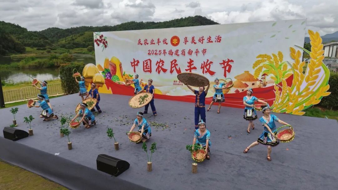秋風(fēng)送爽,碩果盈枝。9月21日,由福建省農(nóng)業(yè)農(nóng)村廳、南平市政府主辦,南平市農(nóng)業(yè)農(nóng)村局、建陽(yáng)區(qū)政府承辦的2025年南平市“中國(guó)農(nóng)民豐收節(jié)”系列活動(dòng)在建陽(yáng)區(qū)舉行。福建省農(nóng)業(yè)農(nóng)村廳副廳長(zhǎng)袁忠賢,南平市政府副市長(zhǎng)魏敦盛,南平市農(nóng)業(yè)農(nóng)村局局長(zhǎng)戴樹(shù)彪,南平市供銷社主任藍(lán)長(zhǎng)柏,建陽(yáng)區(qū)委書(shū)記謝啟龍,各縣(市、區(qū))有關(guān)單位代表等出席活動(dòng)。 記者章小宇:“慶農(nóng)業(yè)豐收,享美好生活。大家好,我現(xiàn)在在南平建陽(yáng)莒口鎮(zhèn)馬伏村,在我身后正在進(jìn)行的就是2025年南平市“中國(guó)農(nóng)民豐收節(jié)”的活動(dòng),在活動(dòng)現(xiàn)場(chǎng)我們可以看到,當(dāng)?shù)氐姆沁z表演——十番鑼鼓已經(jīng)演奏起來(lái)了。在活動(dòng)現(xiàn)場(chǎng),我們不僅可以看到精彩的民俗表演,購(gòu)買(mǎi)特色的農(nóng)副產(chǎn)品,同時(shí)還可以參與到各種趣味的小游戲當(dāng)中,快來(lái)和我們一起感受豐收的喜悅吧!”