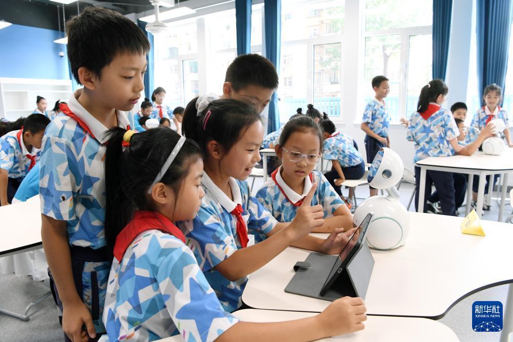 9月24日,老師為北京市第二十中學附屬育鷹小學學生教授人工智能教育通識課《瓷韻中的算法密碼》。 9月24日,“AI賦能強動力 國防教育育新人——數智時代國防教育創新實踐交流研討活動”在北京市第二十中學附屬育鷹小學舉行,本次活動旨在落實“人工智能+教育”與2025年“全民國防教育月”活動要求,通過人工智能和國防教育現場課等形式,展示人工智能技術在教育尤其是國防教育中的創新和應用。 新華社記者 馬寧 攝