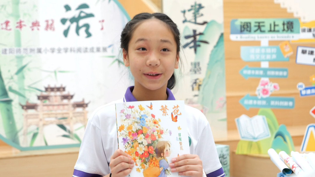 本次惠民書市及閱讀成果展亮點十足。其中,“書香建陽”建設(shè)成果展區(qū)以“建本典籍活了——翻建本墨香,閱萬物美好”為主題。展區(qū)內(nèi),建師附小、實驗小學(xué)、西門小學(xué)、橋南小學(xué)的全學(xué)科閱讀成果展板、原創(chuàng)書攤等有序陳列。小講解員們的生動講解,讓各校閱讀教育創(chuàng)新實踐成果更加鮮活、立體地呈現(xiàn)在大家面前。