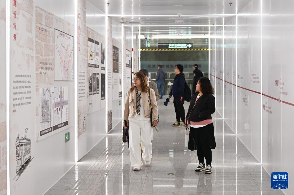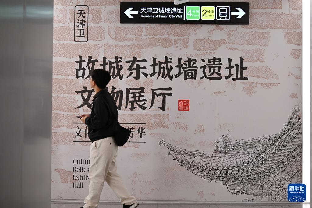 10月10日,地鐵乘客前往天津衛故城東城墻遺址文物展廳參觀。 近日,位于天津地鐵4號線東南角站的天津衛故城東城墻遺址文物展廳正式開放,展廳內21米長的城墻遺址層次分明,讓乘客在出行時也能了解天津歷史。 2017年,在天津地鐵4號線東南角站施工過程中發現文物痕跡,后經文物部門確定為明清時期天津衛故城東城墻遺址,實施原址原狀保護和有效展示利用。 新華社記者 李然 攝